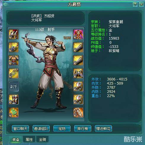 上面说了弓箭的属性+点在说下技能加点,发几个图分别是24区方超贤属性状态和40区4399无双浩哥的技能加点方法