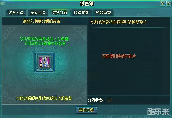最后编辑于7年前明朝传奇更新时装新玩法啦,想要最新的时装吗?想要长期的时装吗?想要随时更新你的服装,改变你的心情吗?那就跟着我来吧,保管你有收获。好了废话不多说了。现在时装多了很多的玩法,游戏中的时装也是多种多样,如清风明月,纯真年代等,都是比较不错的选择。还没时装---no fashion啦!玩法1:时装变形记A、首先要炼制我们变形时装所必须的【时装变形卡】,打开天工炉--铁匠铺--装备分解--放入对应的时装。如图: