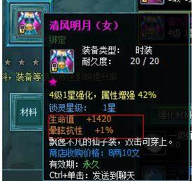 E、只要穿上您之前的时装,那么在背包双击这张变形卡就可以把身上的时装改变成卡上显示的时装啦。大家赶快试试。玩法2:时装期限续期篇当你遇到了喜欢的时装,可却短暂的使用期间,集合了多少材料辛苦换的【朱雀战袍】,就这样看着它成花瓶,这情何以堪呢,不用怕,一切4399强化来帮您。A、时装强化变长期,要求是需要达到4级以上的强化,并且属性加成是42%的。所以玩家还是要跟普通装备一样的逐级逐星的强化才可以。如图: