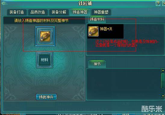 1、要合成神器的基础就是武器必须是橙色以上,蓝色,紫色等都是无效的。神器总共是有上面的3个等级的,不同的等级神器对应着是不同的神节来合成的。如:80级的武器对应1级神节,90级的武器对应2级神节等。只有对应的等级装备使用对应的神节才能够正常的合成的。