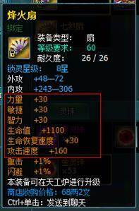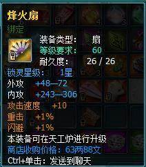 2.2以一件60级金色—烽火扇示例,为你演示铸就自己神器的全攻略!他的初始属性为: