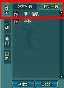 2、 左边的绿色框为宗族,师门的归类。系统会自动匹配所有的好友在几个类别中;