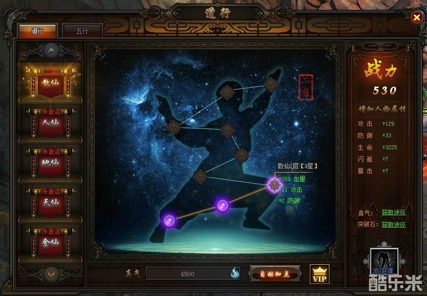 1)道行:战斗力飙升系统2)属性:不同道行对应不同属性加成,不同等级对应不同属性加成3)消耗:通过消耗游戏内的真气激活道行属性4)额外技能buff:达到道行三阶——地仙后,可获得一个增益buff技能