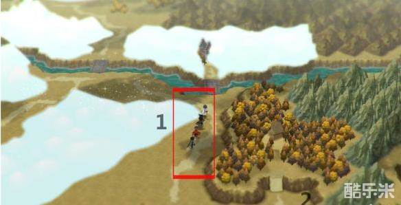 一种是在特定详细区域内(城池,探险点,特殊地点)自由行动,如图中编号1位置,靠近NPC,带队角色头上会有白色感叹号标志,这时我们可以和对应的NPC进行交易或对话。