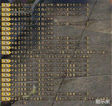当然强1的不算,不做参考,4件+1的垃圾装,先点一个,放一块玉,在没上5以前最少要点6次,至于走势,就比如我今天,遇到的垃圾装备+3,连续7次没成功,也没掉,第8次成功,好啦,果断上13,屡试不爽