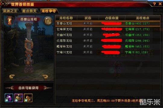 血盟盟主和长老开启才能开启龙柱,只有位于龙柱附近的血盟成员能够获得相应的奖励。