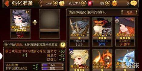 好比5星的一个英雄,就以5星尤伊为例,要想强化尤伊,需要其他应作为强化材料,强化有两种可能性,一个是暴击,还有一个是增加经验。而玩家每次强化英雄需要花费不少金币,经验是个虚的东西,暴击才是玩家们的真实目的。也因为英雄强化暴击加五之后就能进化,也能作为合成高星英雄的材料。