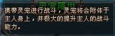 首先我们来说说大家都比较关心的灵宠战斗方面事情:和宠物不同,灵宠是附体与主人身上的,主人可使用灵宠的主动技能;