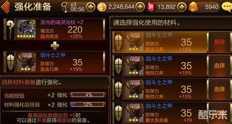 玩家可以根据自己的需要,来挑战不同的冒险,得到奖励。装备当中,武器、防具和宝石都能强化和升星。装备和角色强化有些不一样,装备强化不会出现暴击。但是超过100%的话余额仍然会有效,会带到下个强化阶段,除非遇到升星。