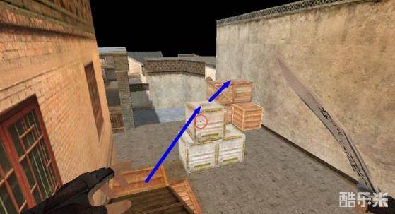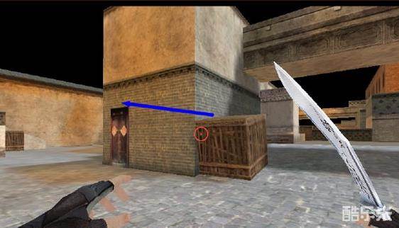 在A点的箱子处,可以利用斜坡助力+跳蹲跳上两边的箱子。除非用枪打,不然是很难被刀刀的
