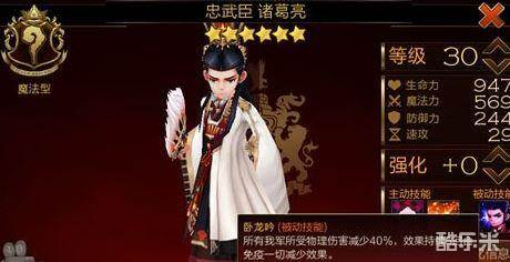 卧龙吟(被动技能):所有我军受到的物理伤害减少40%,效果持续6回合。免疫一切减少效果。