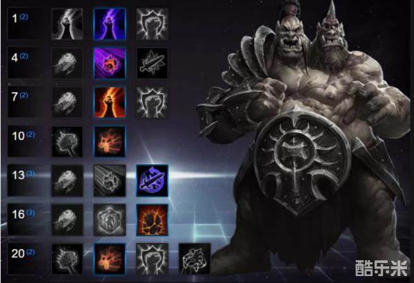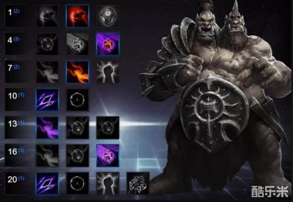 20级:挫志怒吼效果最明显,现在E没晕眩可以加强大招减少冷却时间,比较适合对付泰凯斯和裂空,不过对面也不傻不会老打你。