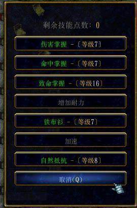 所以,我觉得最好的加点方式就是: 战斗体制(1),战斗指挥(1),专心(20),旋风(1),铁布衫(1),致命掌握(10左右),伤害掌握(1),其他的全加命中掌握。