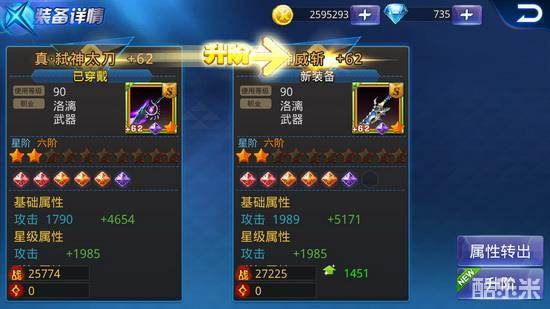 把橙色装备升阶至神威装备,需要神威碎片,这个应该就不用解释了,但是同时还需要一定数量的转移石,这个可能有些玩家就想不通了。下面我们就给大家解释一下装备升阶的原理以及它同属性转出之间有什么联系。