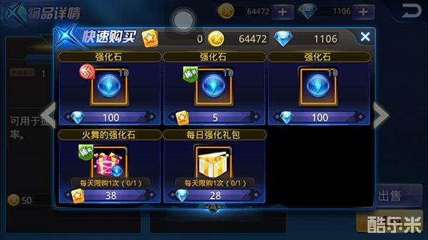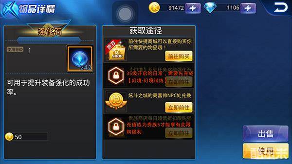 在游戏中强化石的获取途径是比较的丰富的,首先最快速的方法是商城购买。在游戏中玩家可以在商城中用钻石购买,但是这样的花费会非常的高。其次是完成幻境试炼这个任务了,玩家的等级到达35级以后完成幻境试炼最后就可以开启每日获取强化石的日常任务了。最后就是成为贵族在高富帅NPC处兑换,兑换是需要消耗竞技点的,而成为贵族5可以享受折扣价格购买,这样需要消耗的钻石也就会少了很多。
