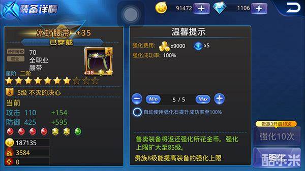 在游戏中玩家要知道在强化装备的时候是能够看到强化的成功几率的,在低等级的时候强化需要消耗的金币比较的少,所以这个时候玩家没有必要使用强化,因为每日获取的强化石数量也是有限的。所以在前期强化装备的时候不要用强化石,宁愿浪费一些金币也是无所谓的。在中后期,强化等级高了以后,每次强化需要消耗的金币会更高,这个时候要是玩家有足够的强化石,那么在中后期是可以节约一大笔金币的。所以可以在游戏中前期的时候积累强化石,中后期利用强化石来更加合理的提升自己的战斗力。