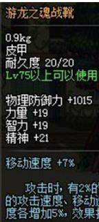 DNF移动版是经典端游地下城与勇士的手游版本,游龙之魂战靴是DNF移动版一件足部装备,它的属性可以增加移速以及攻击速度,下面小编就来给大家看看这件装备的具体属性效果。