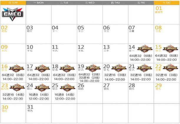 CMEG王者荣耀项目直播时间为:7月19日—7月25日,每日14:00,准时在虎牙、斗鱼、贴吧电竞将实时直播,直播期间参与CMEG公众号“CMEG电子竞技大赛”每日话题互动活动,不仅会有游戏皮肤好礼,更有丰厚的奖品等你来拿!