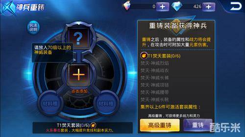 游戏中玩家在通关光辉之城的熔岩之柱与熔岩之心这两个副本的时候就可以获取神兵重铸的材料了,游戏中并非所有的装备都可以重铸的。游戏中重铸的条件就是70级以上的神威装备,重铸以后可以提升装备的属性与战力,并且在战斗中还附带火系附加的伤害,火系伤害越高,对敌人造成的伤害也就越高。