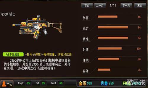 枪林弹雨G36C是HK公司出品的G36系列枪械中最短最轻的步枪枪型,55的伤害略低。