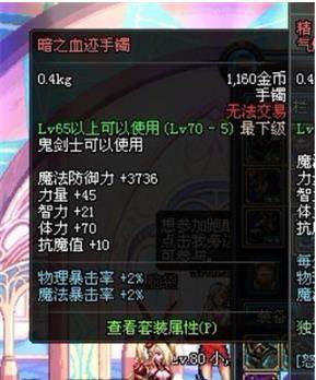 DNF移动版帝国之金鸣石手镯物理属性介绍