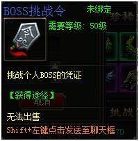 BOSS挑战令获得途径:野外掉落、活动奖励、商城购买