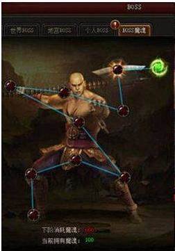 BOSS魔魂:击败国家BOSS均可获得BOSS魔魂值,等级越高的BOSS击败后获得的魔魂值越高。