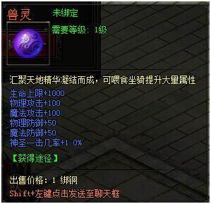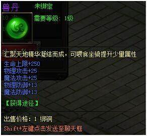兽丹分为4种,每种兽丹增加的属性不同,越高级的兽丹增加的属性越多