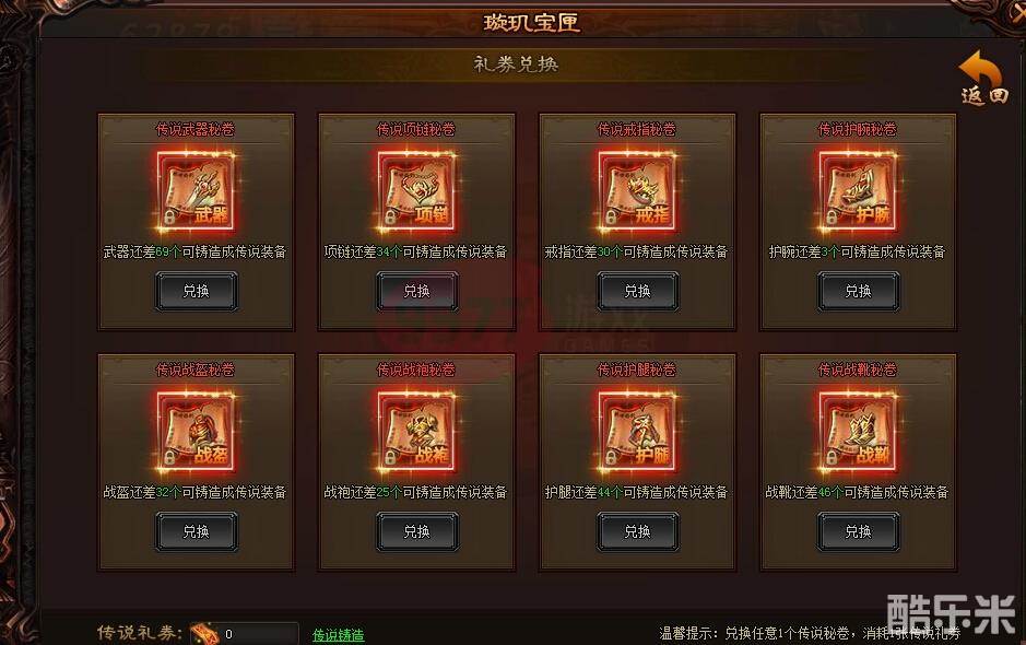 战无不胜网页游戏中想要铸造一件传说装备,需要消耗对应数量的传说秘卷和装备强化石。玩家通过点击游戏界面下方的锻造面板后,选择传说铸造标签即可开窗口。玩家可以将橙色装备进阶为传说装备。