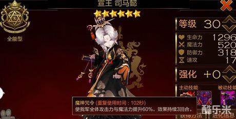 魔神咒令,全队提升攻击及魔法力60%,持续3回合,这个技能类似于丽娜的BUFF,但是却比丽娜的BUFF高出10%的数值,并且是增加攻击和魔力,也就是可以影响奶妈们的奶量。3回合的持续时间也保证了他不会被一大票2回合推进的技能直接推进掉。