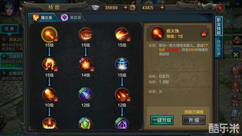 虽说PK乃是寒霜系法师的专长,可面对雪花般飞来的风雷,谁能忍住不接呢?所以,作为一个专业的《QQ华夏》手游法师,也是需要偶尔上上战场的。爆炎系法师PK技能个人推荐烈炎冲击+炎火陨石+火舞红尘+炙炎破+化影移形+雾隐迷踪+疾火珠。有敌人近身时使用的火舞红尘;有保命技能雾隐迷踪;化影移形可随时与敌人拉开距离;剩下的技能中炎火陨石和炙炎破都有晕眩的功能;而烈炎冲击则贵在冷却时间只有6秒,除了疾火珠外冷却时间最短。此键位设置个人觉得适合半吊子的小R人群,大神们除外(大神们都玩寒霜系法师了)。