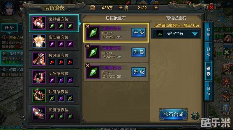 宝石类的话,不由多说攻击类肯定是天行石啦。而防御类宝石呢,除了没有选择的披风、腰带、鞋子只能是元如石外,有选择的建议用望月石。个人感觉装备合成上物理防御比法术防御难上,所以物防一直都比法防差好多。当然,宝石也不是一层不变的,看到双防不平衡的时候,不妨取下调整调整。