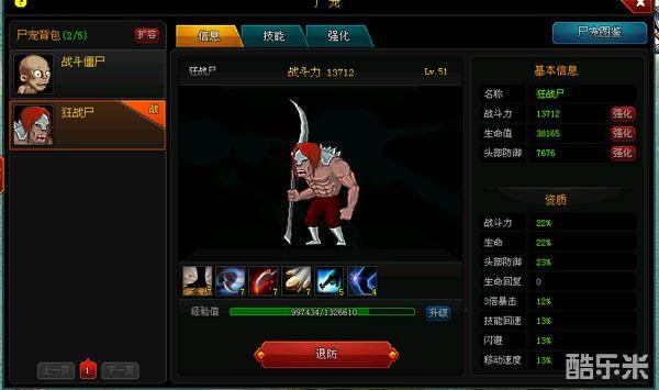 获得狂战尸后进行培养,又是一个给力的战斗伙伴啊。