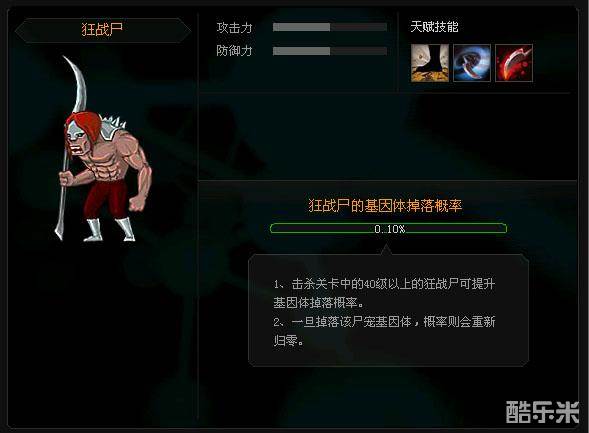 当刷到概率差不多为10%之后就很容易获得狂战尸基因了。