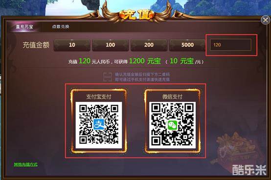 除了方法一外,玩家也可以直接打开游戏客户端,点击游戏左下角“充”图标并打开游戏内充值页面。在“直冲元宝”界面中输入您要充值的金额后。然后通过支付宝或是微信的二维码扫描支付来直接进行元宝的充值。