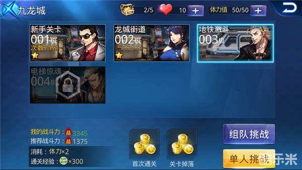 地铁激斗的推荐战斗力是1375,而我的战力则是3345,单单是系统一开始赠送的装备和称号就这么多的战力,所以这里的整个副本都是给大家练手的,主要的目的还是为了让大家熟悉游戏流程,多多了解一下游戏结构。这个关卡首次通关之后会得到一定数量的金币奖励,虽然不多,但是聊胜于无,我们还需要慢慢积攒。