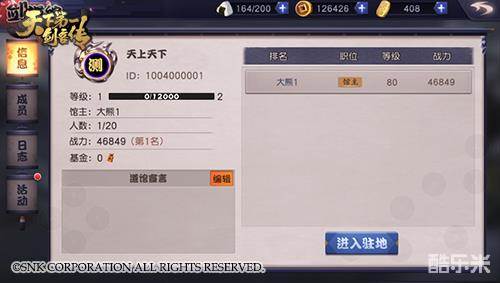 打开道馆的信息界面,能够看到已加入道馆的相关信息,并且可以通过该界面进入道馆驻地。通过一个道馆人数、战力、基金的情况,能够大致了解到该道馆的实力水平。越强的道馆能为玩家提供越多的福利,所以要及时关注这里的信息,随时了解自己道馆的情况。