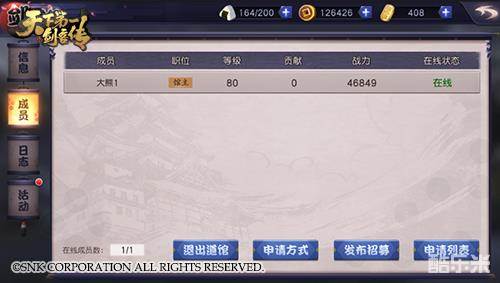 成员界面显示已经加入道馆的所有成员及其相关信息,根据道馆职位可以完成退出道馆,修改道馆申请方式,发布招募信息和审核其他玩家的加入申请等操作。道馆的日志界面记录了所有成员对道馆进行的操作和贡献,公开透明,便于管理。