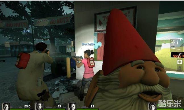 但是拿到Gnome,仅仅是开始。这个成就完成,太需要配合了,你必须抱着它一直到最后一关跳上直升飞机(抱着Gnome没有攻击力,只能推开僵尸),而且每一关都要抱到安全室。拿到Gnome是第二关,而黑色嘉年华一共是五关。而且黑色嘉年华很多关都要冲锋的,你需要队友的掩护才行。这个成就,只要最后一关有一个人活着、抱着Gnome跳进直升机,所有4个人都能获得成就