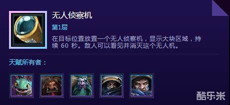 在固定放置一个无人机后,能提供视野、反隐,持续60秒。无人机可被敌方击落。