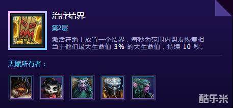 放置一个治疗结界后,范围内为盟友提供3%每秒,持续10秒的治疗,并且提供视野。