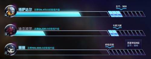 每个英雄的等级提升:每个英雄达到5级均奖励500金币。