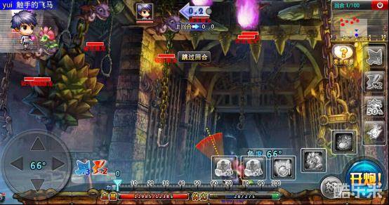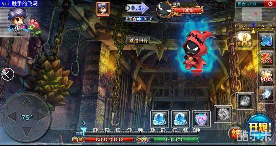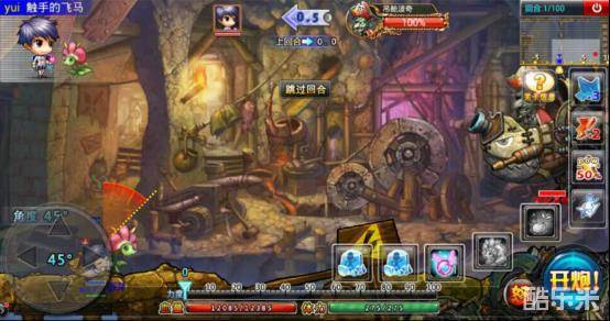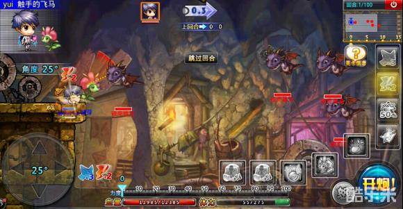 这一关比较闹心的是波奇每回合都会调整高度,其实瞄准的角度并不复杂,只需每回合网上调整一下,力度大概使用40--50,带上+2和pow50%,攻击力稍强的玩家甚至可以几个回合就可以将怪物解决掉!