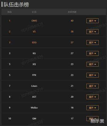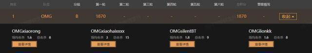 不仅如此,OMG的团队击杀也达到了惊人的40杀,备受关注的QM战队也以17杀的成绩位列团队击杀第10名。