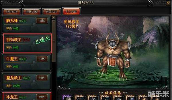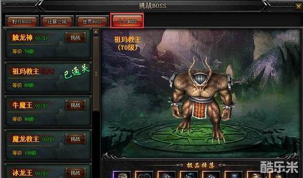 个人BOSS界面内的所有BOSS随着玩家等级的提升逐一解锁。