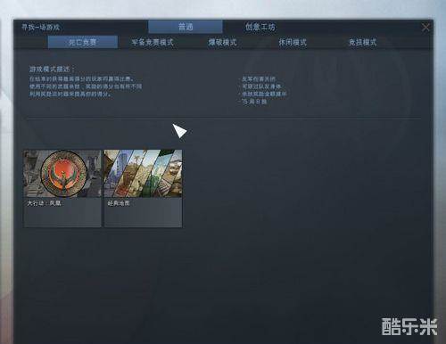 休闲模式:(包括大行动地图,经典C4地图以及人质地图)