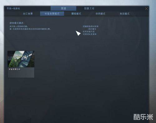 竞技模式即匹配模式,玩家通过游戏每回合开始使用获得的金钱购买武器,通过消灭敌方队伍或者完成目标获胜。竞技模式与玩家等级水平有关,玩家必须参与整场比赛,若中途断开游戏,将会降低匹配等级。