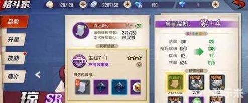 1、 格斗家升阶材料:升阶需要6种材料,不同格斗家升阶所需材料各不相同,均可通过扫荡指定的剧情关卡获取。也可直接在商城购买紫色/橙色品阶礼包获取升级材料。