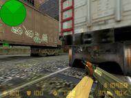 六号车厢下的闪光弹爆炸后可以白掉下图中的两个位置(左起第一张图和第二张图的位置)。扔出第二颗闪光弹过后一号队员利用连跳跳出中路上到六号车厢顶部查看六号车厢左侧,两节五号车厢之间以及CT中路的情况。当三名走绿色通道的队友已经到达雷区后方后,一号队员可以从六号车厢左侧防守CT中路。