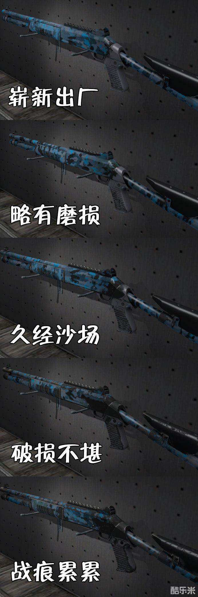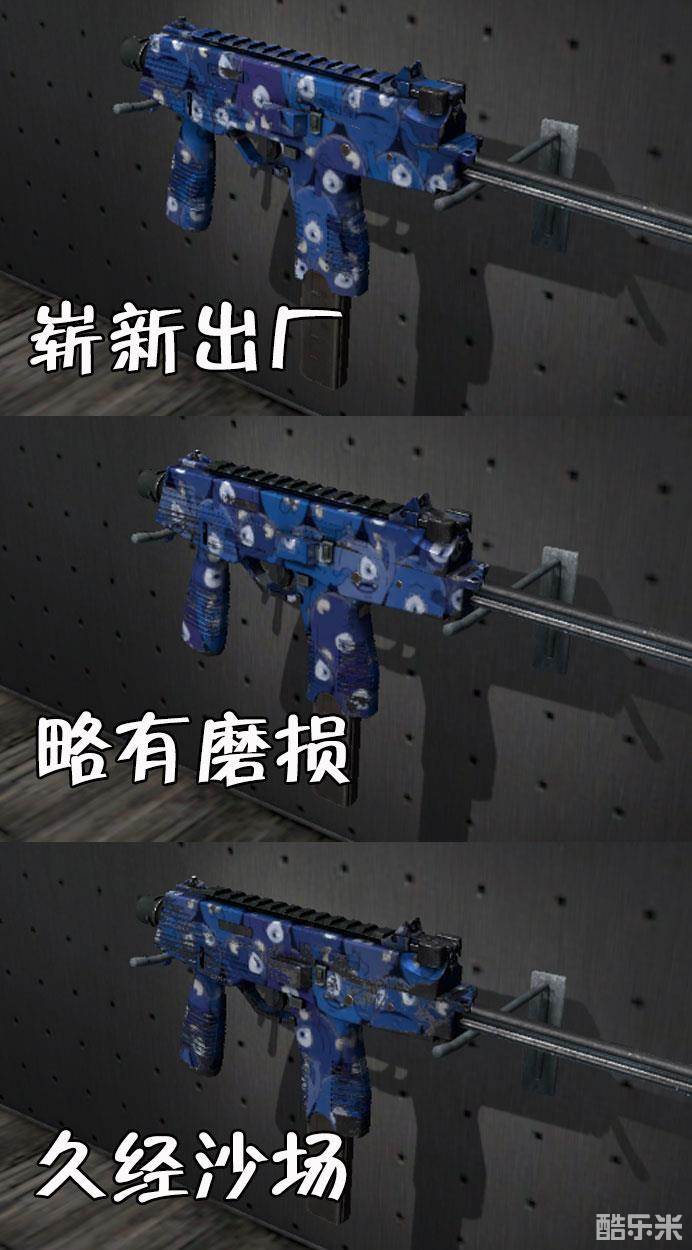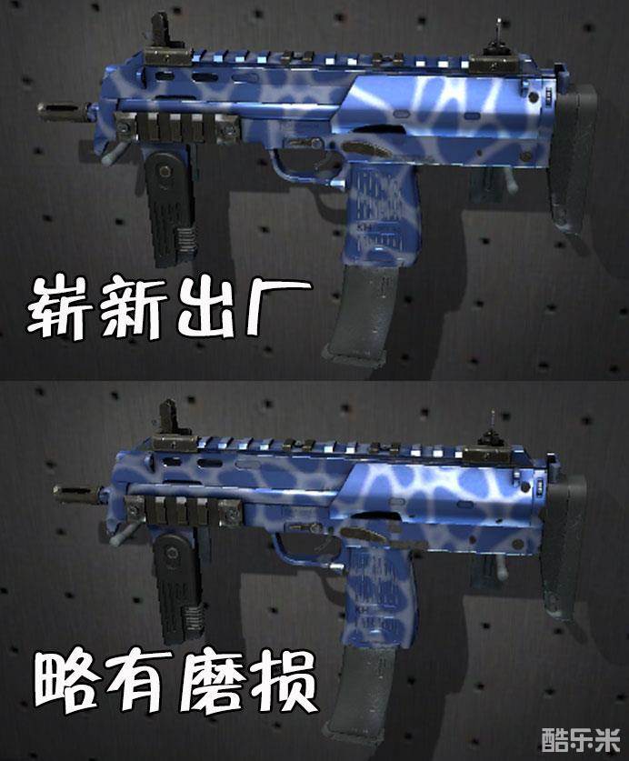 蔚蓝多变迷彩是款卡磨损皮肤,磨损区间为0.00<<0.50。蔚蓝多变迷彩极为吃磨损,即使崭新也能在照门处看到明显磨损。所以从外观来看,尽量选择崭新,磨损越低越好。